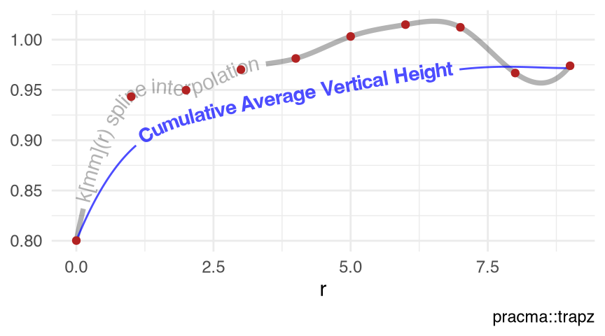 The S3 method visualize_vtrapz.fv() (Section 11.2, Table 11.2) visualizes the cumulative average vertical height of the trapezoidal integration (Section 11.1) under the recommended function values